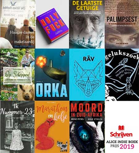 Dit jaar wordt voor de eerste maal de Alice Indie Boekprijs uitgereikt voor het beste onafhankelijk uitgegeven boek. De prijs is een initiatief van het Schrijven Magazine. Het gaat hierbij om boeken die helemaal in eigen beheer zijn uitgeven, boeken van een collectieve Indie-uitgeverij, tot min of meer traditioneel uitgegeven boeken door een kleine uitgever.