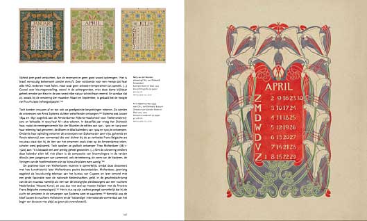 Spread uit het boek ‘Art Nouveau in Nederland’ met afbeeldingen van kalenderbladen